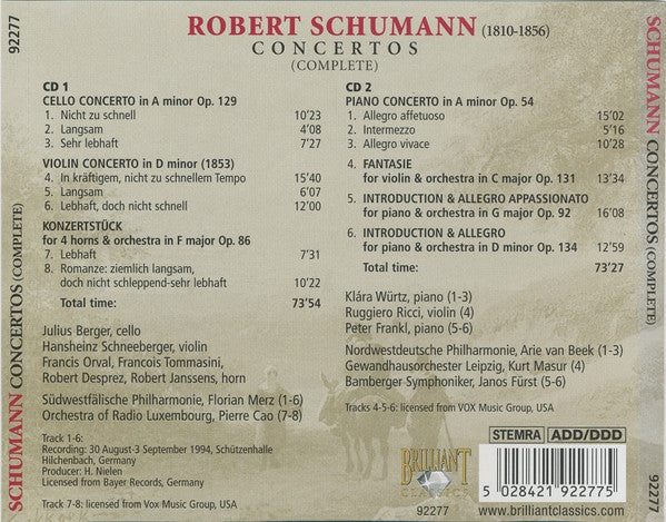 Robert Schumann - Concertos (Complete) (2xCD, Comp)