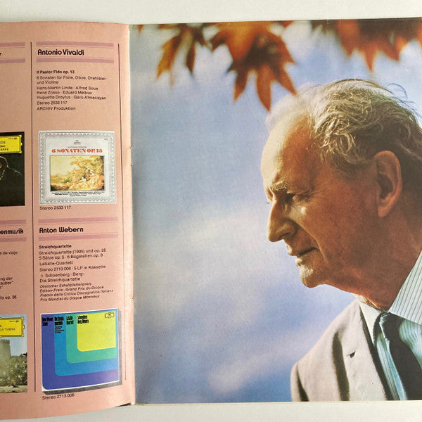 Gatefold sleeve with a 20 page stapled booklet with a selection of D.G. releases from the complete catalogue of piano, organ and chamber music.
