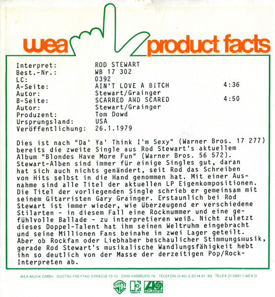 Rod Stewart - Ain't Love A Bitch (7", Single)