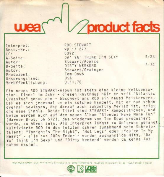 Made in Germany by WEA Musik GmbH Ⓦ A Warner Communications Company
