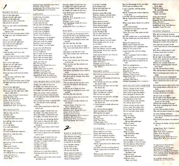 Phonographic Copyright (p) A&M Records, Inc. Copyright (c) A&M Records, Inc. Copyright (c) Dick James Music Copyright (c) Almo Music Corp. Distributed By Polydor Made By PolyGram Pressed By PDO, Germany Published By Unichord Music Recorded At Unicorn Studios Recorded At Robbie Buchanan's Studio Recorded At Hog Manor Recorded At Mama Jo's Recorded At Ocean Way Recording Recorded At Bill Schnee Studios Mixed At Unicorn Studios Mixed At Bill Schnee Studios Mastered At The Mastering Lab Lacquer Cut At PDO, Germany
