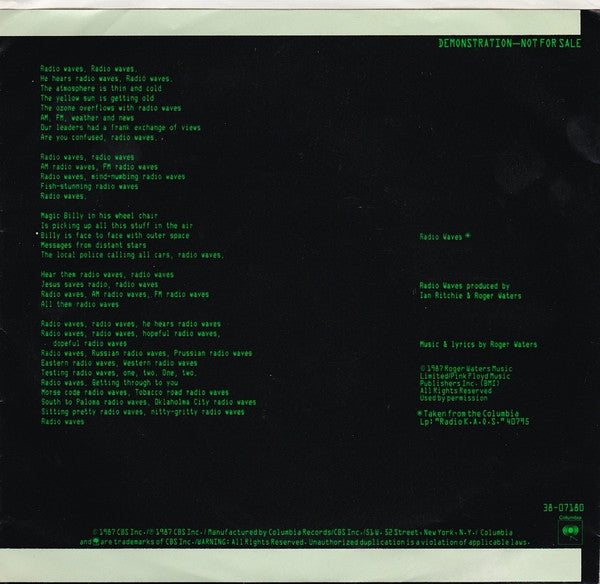 Taken From The Columbia Lp: "RADIO WAVES K.A.O.S." FC 40795