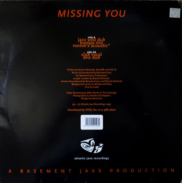 A1. Missing You (Club Vocal) 7:27 AA2. Missing You (Brix Dub) 6:22