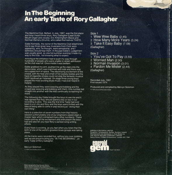 This is in fact an early Taste album. Also released as an album by Taste, titled 'First'.