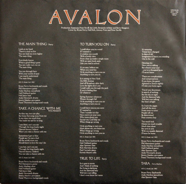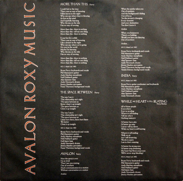A1. More Than This 4:31 A2. The Space Between 4:28 A3. Avalon 4:15 A4. India 1:45 A5. While My Heart Is Still Beating 3:25 B1. The Main Thing 3:47 B2. Take A Chance With Me 4:43 B3. To Turn You On 4:10 B4. True To Life 4:20 B5. Tara 1:32