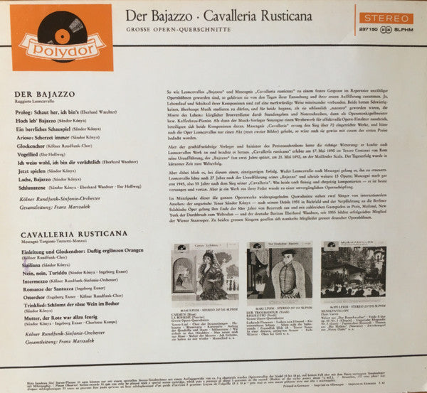 Ruggiero Leoncavallo, Pietro Mascagni - Kölner Rundfunk-Sinfonie-Orchester, Franz Marszalek