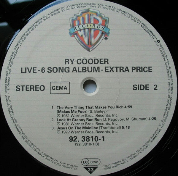 Ry Cooder - Live (LP, MiniAlbum)
