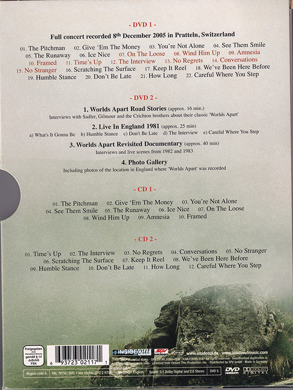 DVD2-1. Worlds Apart Road Stories (Approx.16 min.) Interviews With Sadler, Gilmour And The Crichton Brothers About Their Classic “Worlds Apart”