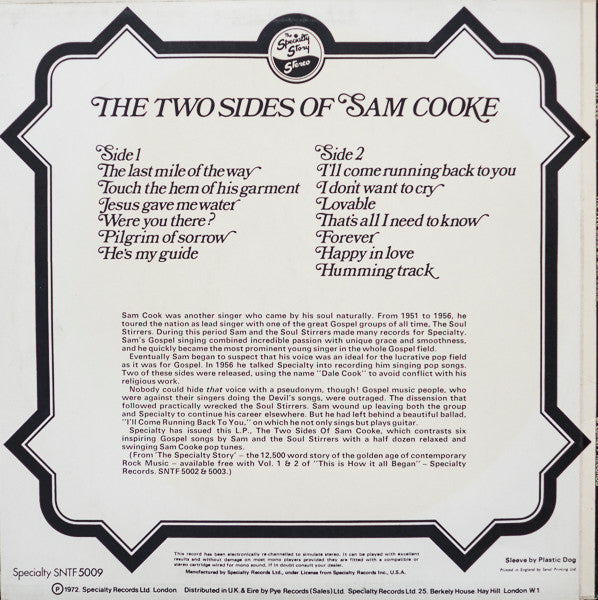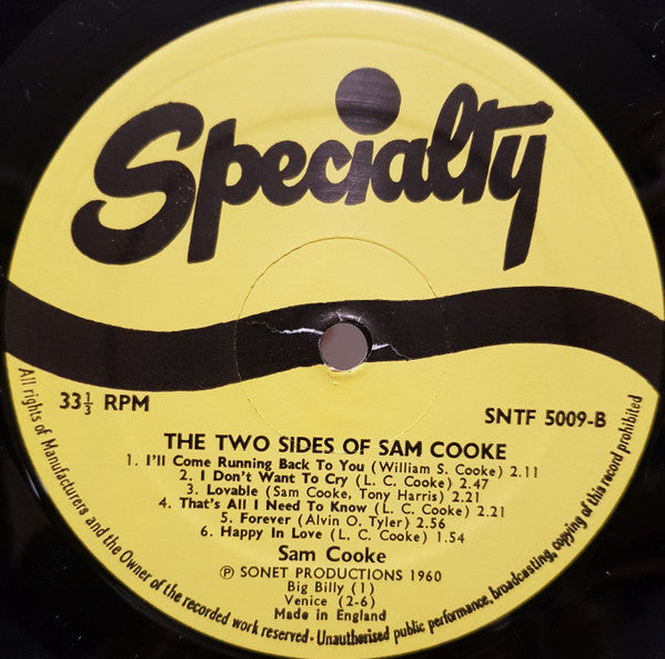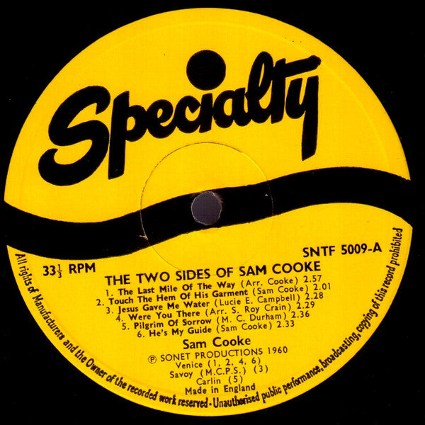 Manufactured by Specialty Records Ltd., under License from Specialty Records Inc., U.S.A.