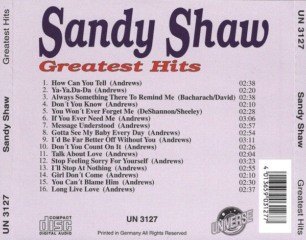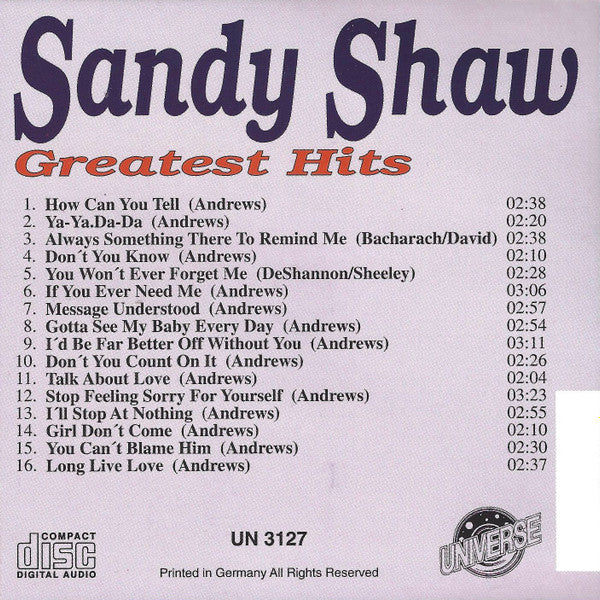 1. How Can You Tell 2:382. Ya-Ya.Da-Da 2:203. Always Something There To Remind Me 2:384. Don't You Know 2:105. You Won't Ever Forget Me 2:286. If You Ever Need Me 3:067. Message Understood 2:578. Gotta See My Baby Every Day 2:549. I'd Be Far Better Off Without You 3:1110. Don't You Count On It 2:2611. Talk About Love 2:0412. Stop Feeling Sorry For Yourself 3:2313. I'll Stop At Nothing 2:5514. Girl Don't Come 2:1015. You Can't Blame Him 2:3016. Long Live Love 2:37