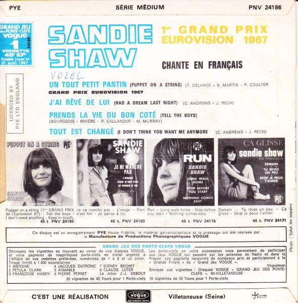 A1. Un Tout Petit Pantin 2:30 A2. J'ai Rêvé De Lui 2:34 B1. Prends La Vie Du Bon Coté 2:53 B2. Tout Est Changé 2:10