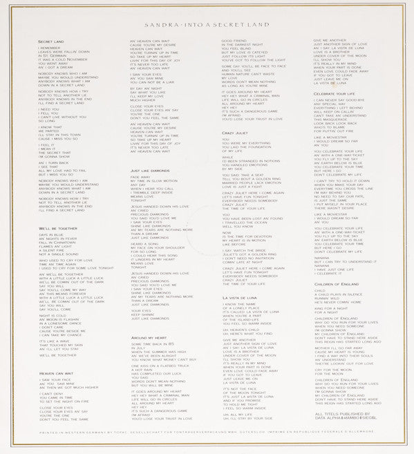 some copies came with golden, some with silver hype-sticker on front : DAS ALBUM MIT DEN HITS SECRET LAND WE'LL BE TOGETHER HEAVEN CAN WAIT