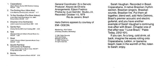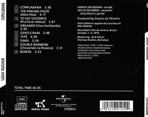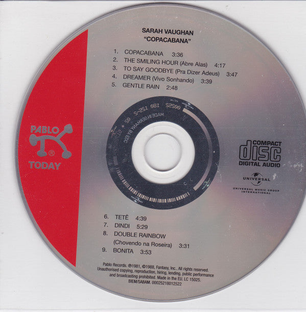 Sarah Vaughan - Copacabana (Exclusivamente Brasil) (CD, Album, RE)