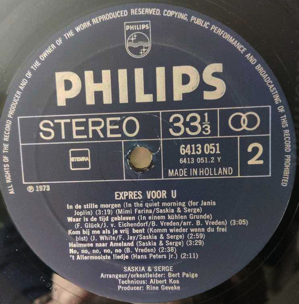 Frontside of the album sleeve says "Afzender: Saskia & Serge" as if it is a letter sent by them