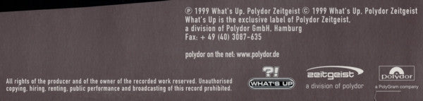 Recorded and mixed at Homebase Studio, Hamburg Published by Loop/Warner Chappell, Diana Music & Vision ℗ + © 1999 What's Up?! - Polydor Zeitgeist Made in Germany.