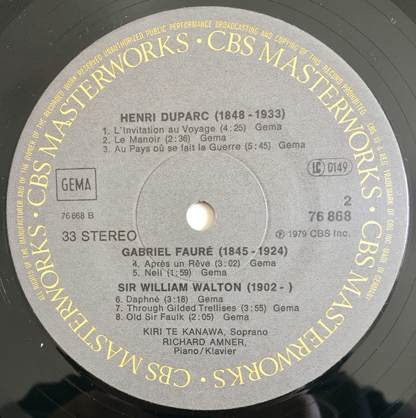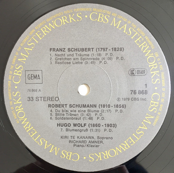 Franz Schubert, Robert Schumann, Hugo Wolf, Henri Duparc, Gabriel Fauré, Sir William Walton - Richard Amner, Kiri Te Kanawa