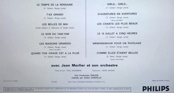 ℗ 1968 Avec Jean Morlier Et Son Orchestre Reissue not before 1975 due to black bare vinyl center rings.