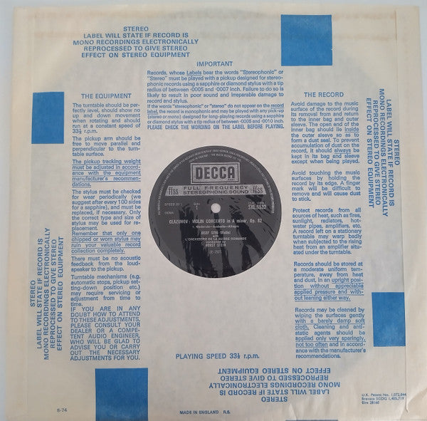 . Alexander Glazunov, Josef Sivo, L'Orchestre De La Suisse Romande, Horst Stein - Violin Concerto In A Minor, Op. 82