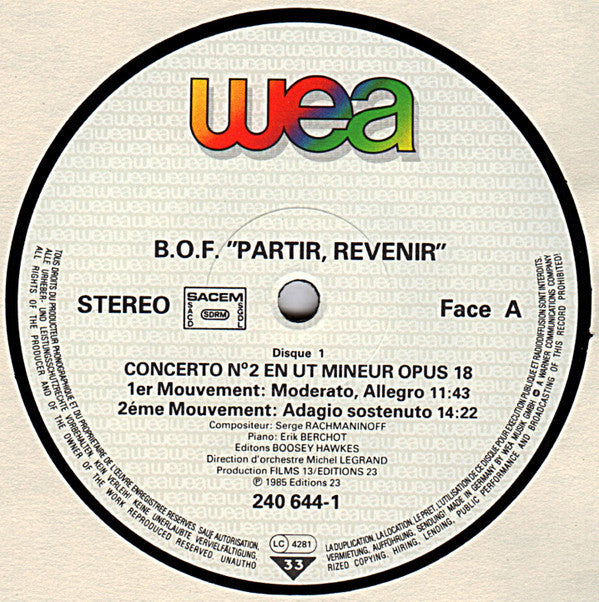Sergei Vasilyevich Rachmaninoff, Michel Legrand - Partir Revenir (Bande Originale Du Film) (2xLP)