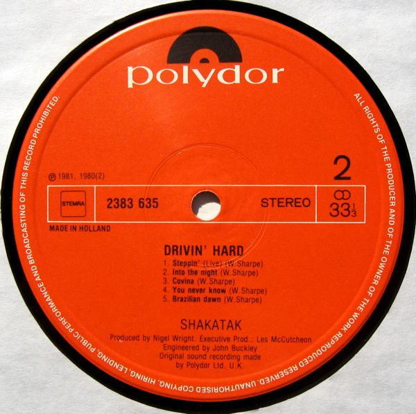 Record Company Polydor Ltd. (UK) Phonographic Copyright (p) Polydor Ltd. (UK) Copyright (c) Polydor Ltd. (UK) Recorded At Majestic Studios Recorded At Strawberry Studios South Lacquer Cut At PRS Baarn Pressed By PRS Baarn Marketed By Polydor B.V.