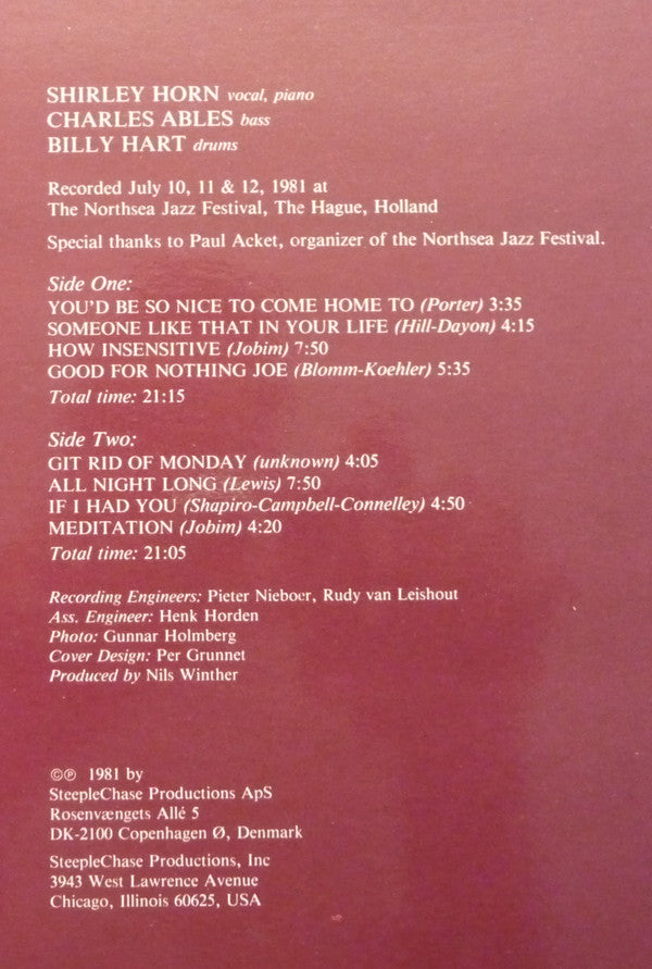 Recorded July 10, 11 & 12, 1981 at The Northsea Jazz Festival, The Hague, Holland ©℗ 1981 by SteepleChase Productions ApS Made in Denmark on labels.