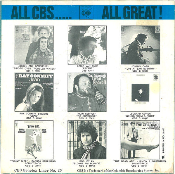On label: * "RECORDING FIRST PUBLISHED 1966" * Made in Holland On backcover: * CBS Benelux Liner No. 25 * NL Printed in Holland