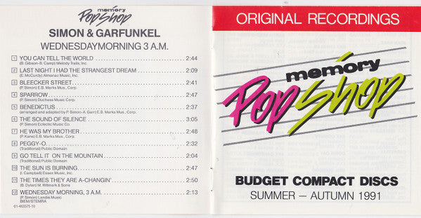 Issued in a jewel case with an 8-page booklet including "Memory Pop Shop, Budget Compact Discs Summer - Autumn 1991".