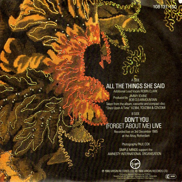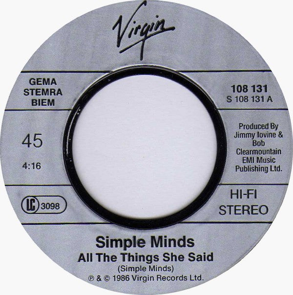 Simple Minds - All The Things She Said (7", Single)