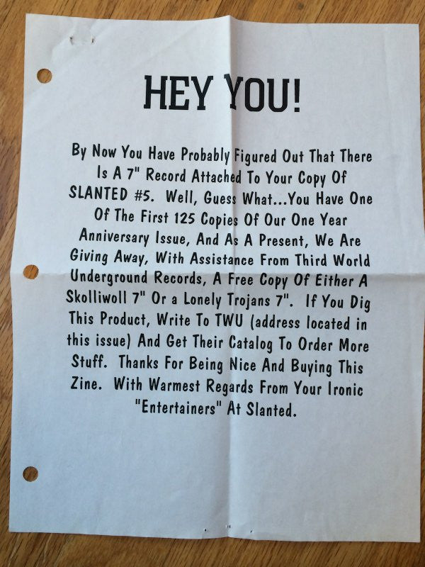 Some copies were included with the zine Slanted, one year anniversary edition, #5. Only first 125 copies had a single, either this one by Skolliwoll or another by Lonely Trojans, with an explanatory insert [see Images.