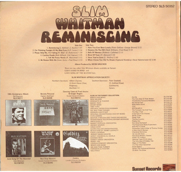 Slim Whitman - Reminiscing (LP, Album, RE)