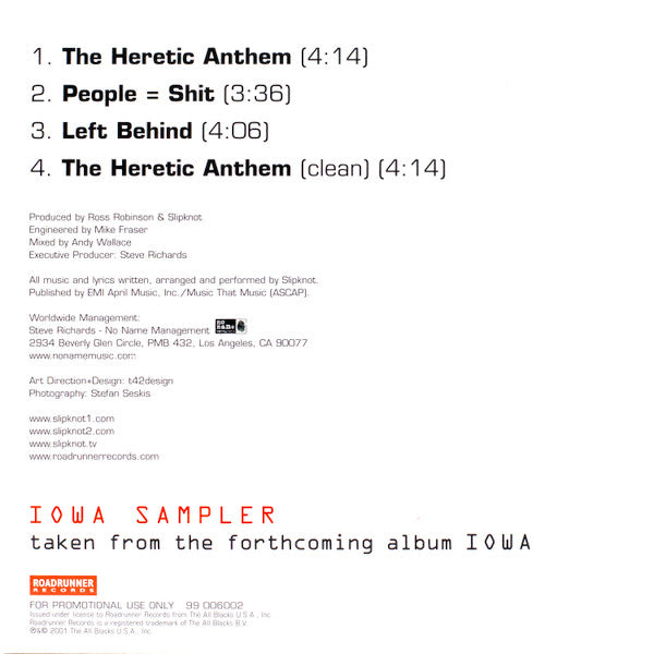 Slipknot - Iowa Sampler (CD, Promo, Smplr)