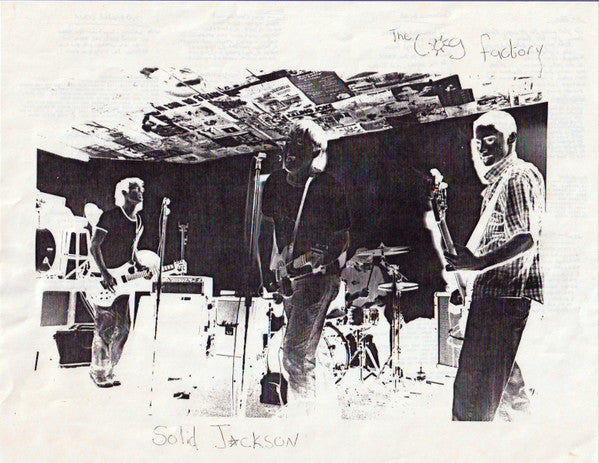 Includes two black and white photocopied inserts. One has a band photo of Solid Jackson playing at the Cog Factory in Omaha, Nebraska and lyrics on the reverse. The second has a Sing, Eunuchs! catalog on one side and credits/thanks on the reverse.