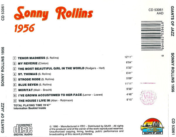Tracks 4 to 7 from 'Saxophone Colossus', recorded NYC, June 22, 1956