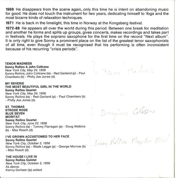 Tracks 8 & 9 from 'Sonny Rollins Plays For Bird', recorded NYC, October 5, 1956