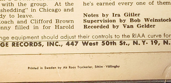 Printed in Sweden print on back cover (Printed in Sweden by Ab Roos Tryckerier, Sthlm - Vällingby )