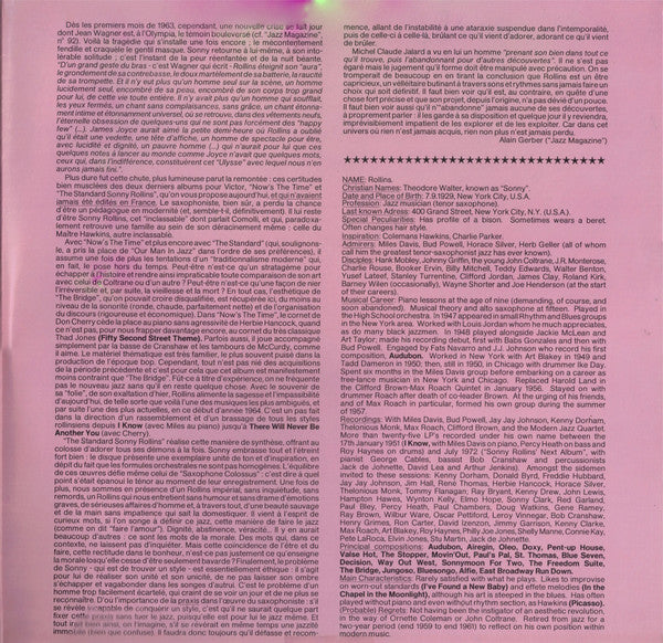 A1. Now's The Time 4:02 A2. Blue'n Boogie 5:27 A3. I Remember Clifford 2:33 A4. Fifty-Second Street Theme 4:29 B1. St. Thomas 3:53 B2. 'Round Midnight 4:00 B3. Afternoon In Paris 2:41 B4. Four 7:11 . Vol. 6: "The Standard Sonny Rollins" C1. Autumn Nocturne 2:58 C2. Night And Day 3:17 C3. Love Letters 3:25 C4. My One And Only Love 5:58 C5. Three Little Words 2:14 D1. Trav'lin' Light 4:07 D2. I'll Be Seeing You 1:35 D3. My Ship 4:10 D4. It Could Happen To You 4:17 D5. Long Ago And Far Away 2:49