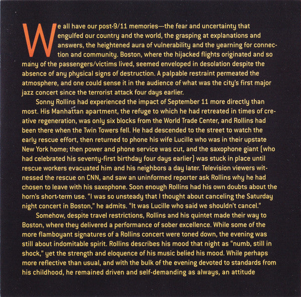 Sonny Rollins - Without A Song The 9/11 Concert (CD, Album)