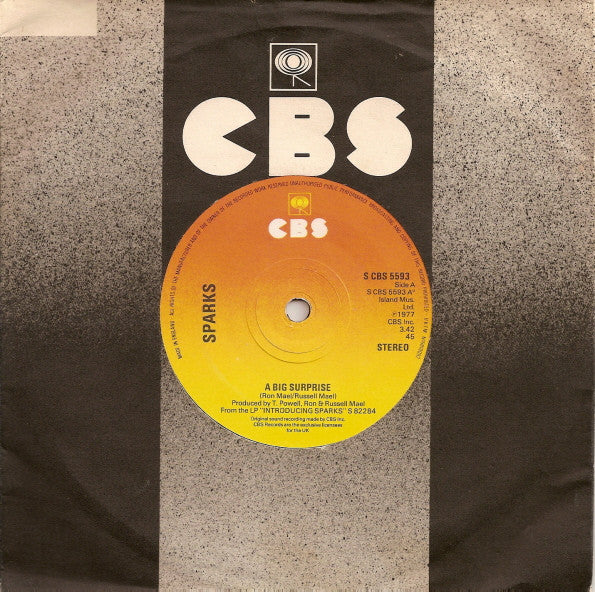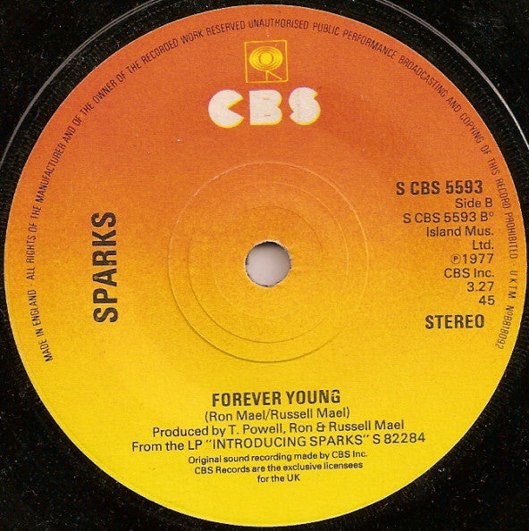 From The LP "Introducing Sparks" S 82284 (Title in capitals on label)