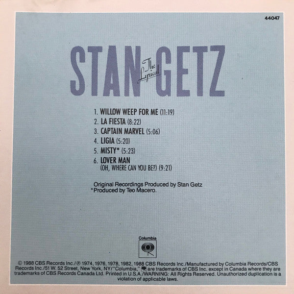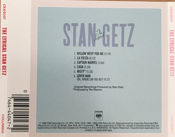Stan Getz - The Lyrical Stan Getz (CD, Comp, RM)