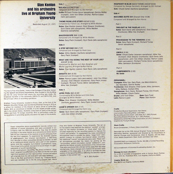 Stan Kenton And His Orchestra - Live At Brigham Young University (2xLP, Quad)
