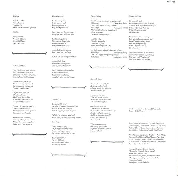 Large Mad Hatter labels and lyric inner sleeve with credits and a b&w photo.