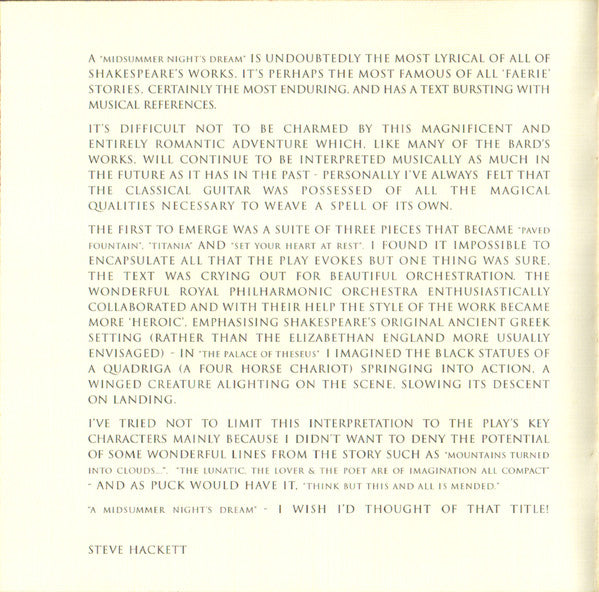 The CD contains a computer track with some informations about the artists on Camino Records and some other Hackett albums, including some soundbits.
