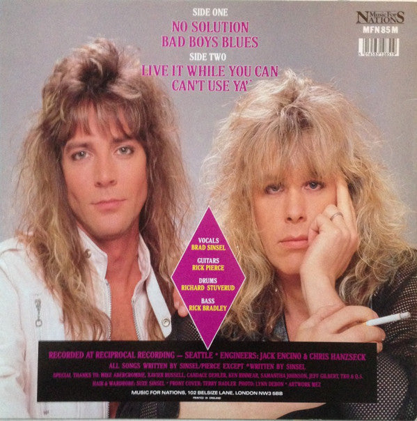 Writing credits in the tracklisting above are listed as they appear on the back cover. These also match the given publishing credits on the labels. On the label, track B2 is incorrectly credited to Pierce as well as Sinsel.