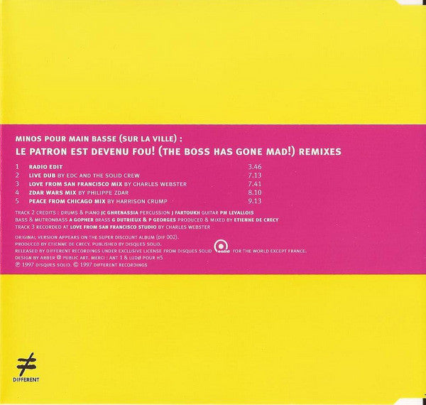 Super Discount, Minos Pour Main Basse (Sur La Ville) - Le Patron Est Devenu Fou! = The Boss Has Gone Mad! (Remixes) (CD, Single)