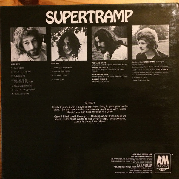 Printed By Akenmay Ltd. Pressed By CBS Pressing Plant, Aston Clinton Published By Tudor Music