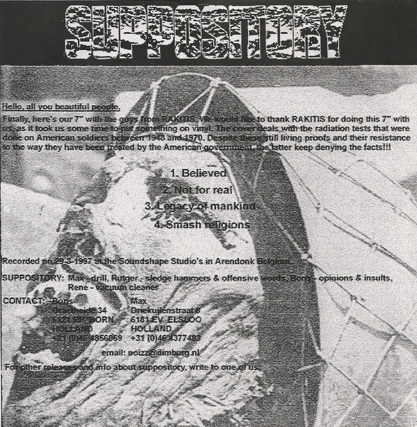 Suppository recorded on 29-3-1997 at the Soundshape Studio's in Arendonk Belgium.