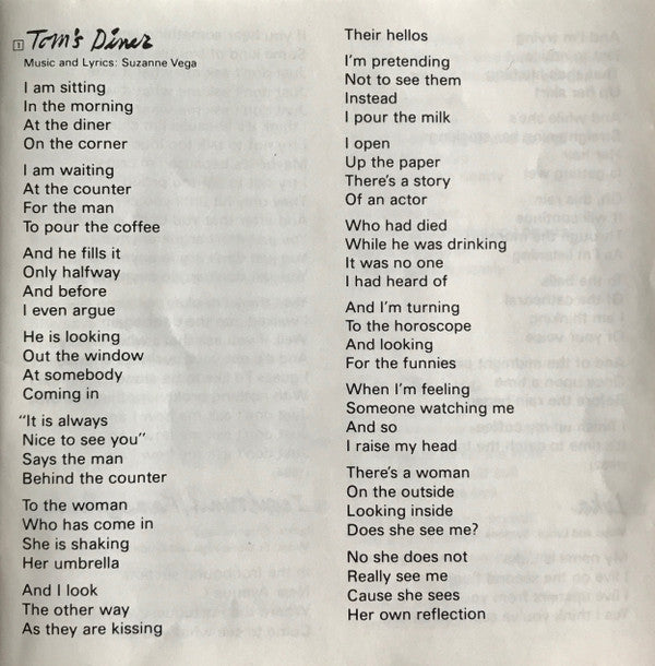 1. Tom's Diner 2:092. Luka 3:523. Ironbound / Fancy Poultry 6:194. In The Eye 4:165. Night Vision 2:476. Solitude Standing 4:497. Calypso 4:148. Language 3:579. Gypsy 4:0410. Wooden Horse (Caspar Hauser's Song) 5:1311. Tom's Diner (Reprise) 2:40