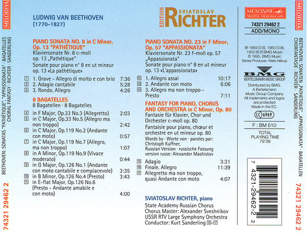 . Piano Sonata No. 8 In C Minor, Op.13 "Pathétique" . 8 Bagatelles . Piano Sonata No. 23 In F Minor, Op. 57 "Apassionata" . Fantasy For Piano, Chorus And Orchestra In C Minor, Op. 80