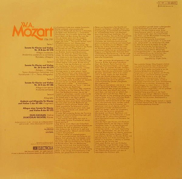 Sviatoslav Richter, Oleg Kagan, Wolfgang Amadeus Mozart - Drei Sonaten Kv 378, 379, 306 / Andante Und Allegretto Kv 404 / Allegro B-dur Kv 372 (2xLP)
