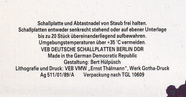Pressed By VEB Deutsche Schallplatten Potsdam-Babelsberg